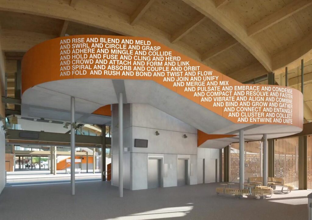 Together We is a major new public art commission created for Cambridge South Station by artist Mark Titchner [LINK].